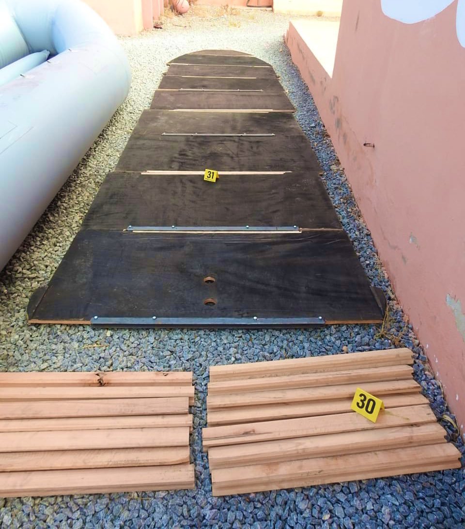 وذكر بلاغ للمديرية العامة للأمن الوطني أنه جرى توقيف المشتبه فيه الأول، الذي يعمل مساعدا لسائق حافلة للنقل العمومي، على مستوى السد القضائي الموجود بالمدخل الشمالي لمدينة كلميم، قادما إليها من إحدى مدن شمال المملكة، قبل أن تسفر عملية التفتيش التي أجريت بداخل الحافلة عن حجز قارب مطاطي ومجموعة من الأعمدة والألواح الخشبية التي يشتبه في أنها موجهة لفائدة شبكة إجرامية تنشط في تنظيم عمليات الهجرة السرية.